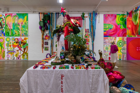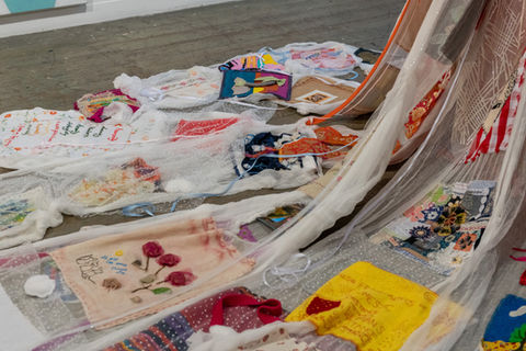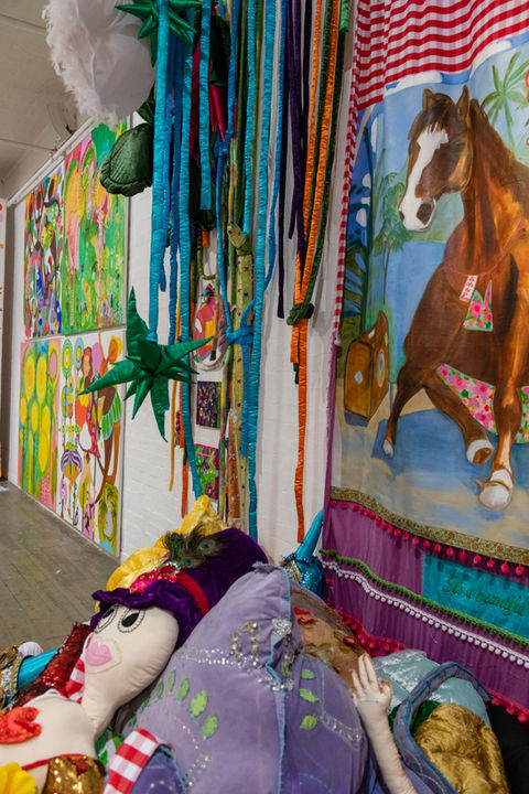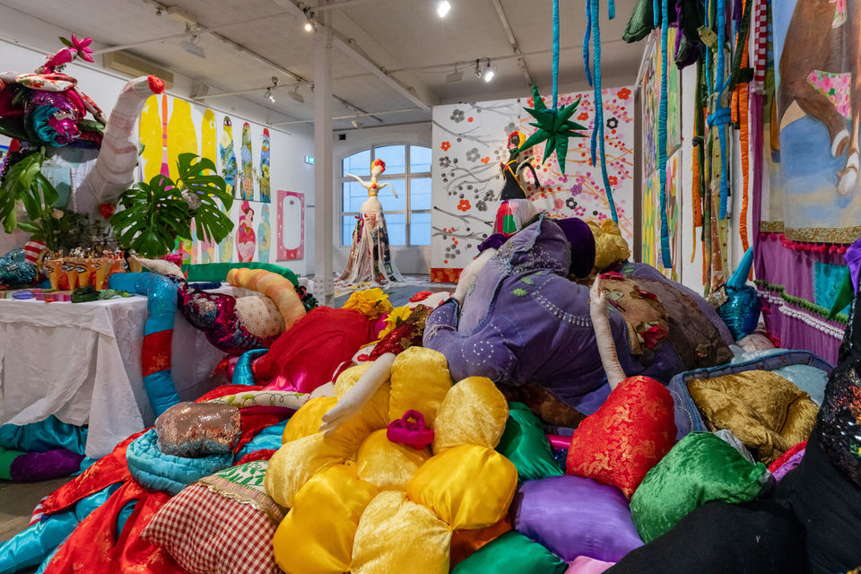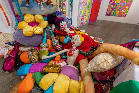 An expanded exploration of the oversized soft-sculpture installations Janno produced during her Masters' studies at VCA (2017-18), Making Nonsense is her response to the pandemic of 2020 with all its accompanying crises, upheaval, and disorientation. Understandable as a defiant celebration of life, resilience, humour, and absurdity, Janno’s enduring preoccupations as an artist encompass ideas about compassion, love, and community as the sustaining principles of a kinder world.