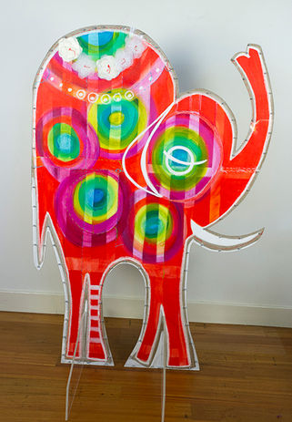 -Who Moved My Elephant- is a body of work about the transition of return to Australia after a prolonged absence and the ironies of coming ‘home’ to a country that is simultaneously deeply familiar and strangely alien. Janno’s artworks seek to sow hope, bravery, love, optimism, resilience and whimsy; - anchored by a deliberately ridiculous and unwavering sense of humour. Her approach is unapologetically bold with a preference for blazing colour and mixed media. She deploys text, thread and richly associative metaphors to portray the most vulnerable, fragile and endangered in society. In her previous solo exhibitions, Janno has explored the theme of the outsider; the foreigner living in a non-English speaking world; the disenfranchised urban poor; and closer to home and as the mother of a child with autism, the isolation of disability. ‘Who Moved My Elephant’ continues to portray the plight of the outsider in a collection of large, abstract, colour-fuelled paintings and smaller, intimate, paper works and sculptures.